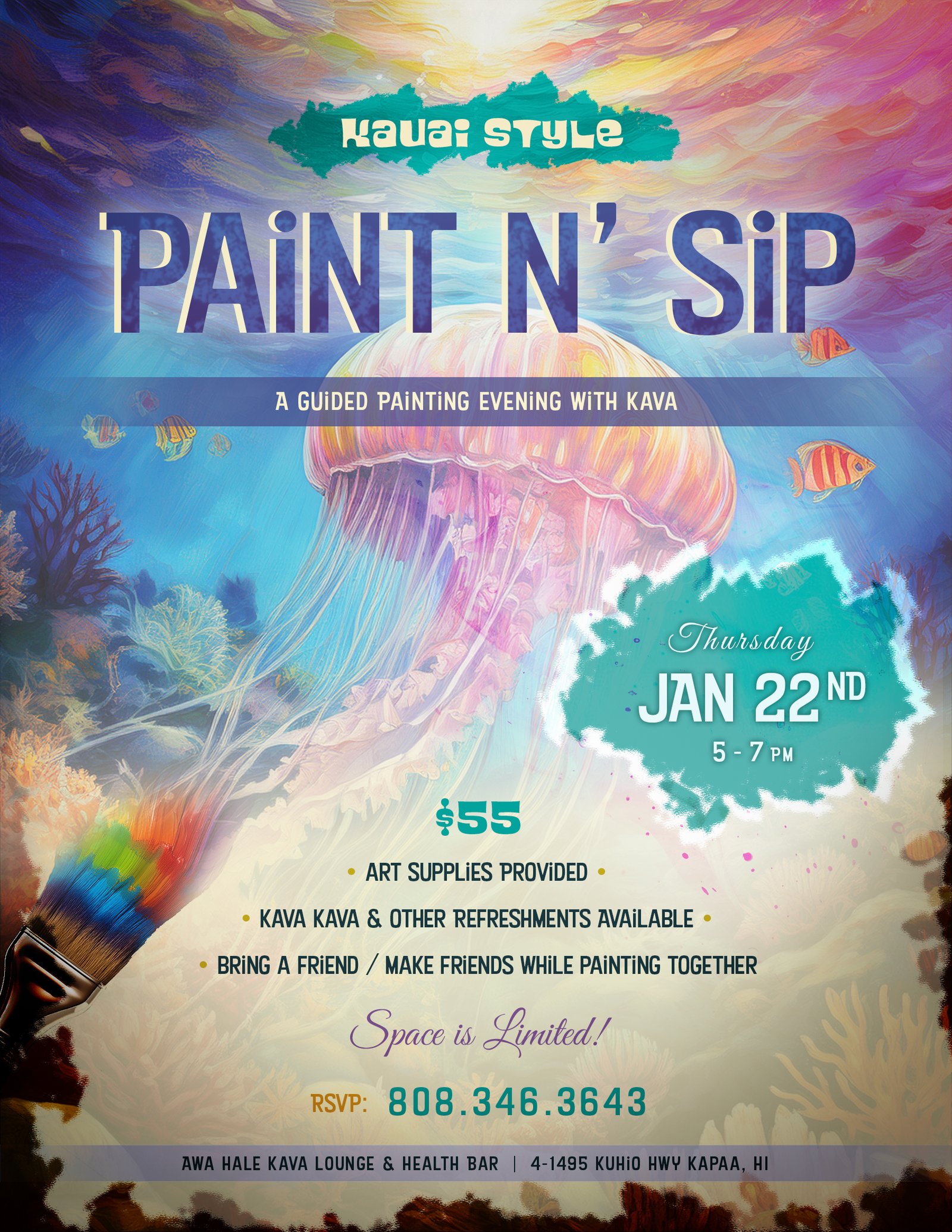 This event will be located at Awa Hale Kava Lounge in Kapaa. Please plan to purchase at least 1 item to support Awa Hale.